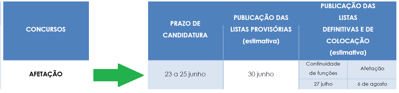 - Afetação - de 27 a 30 de junho de 2022.